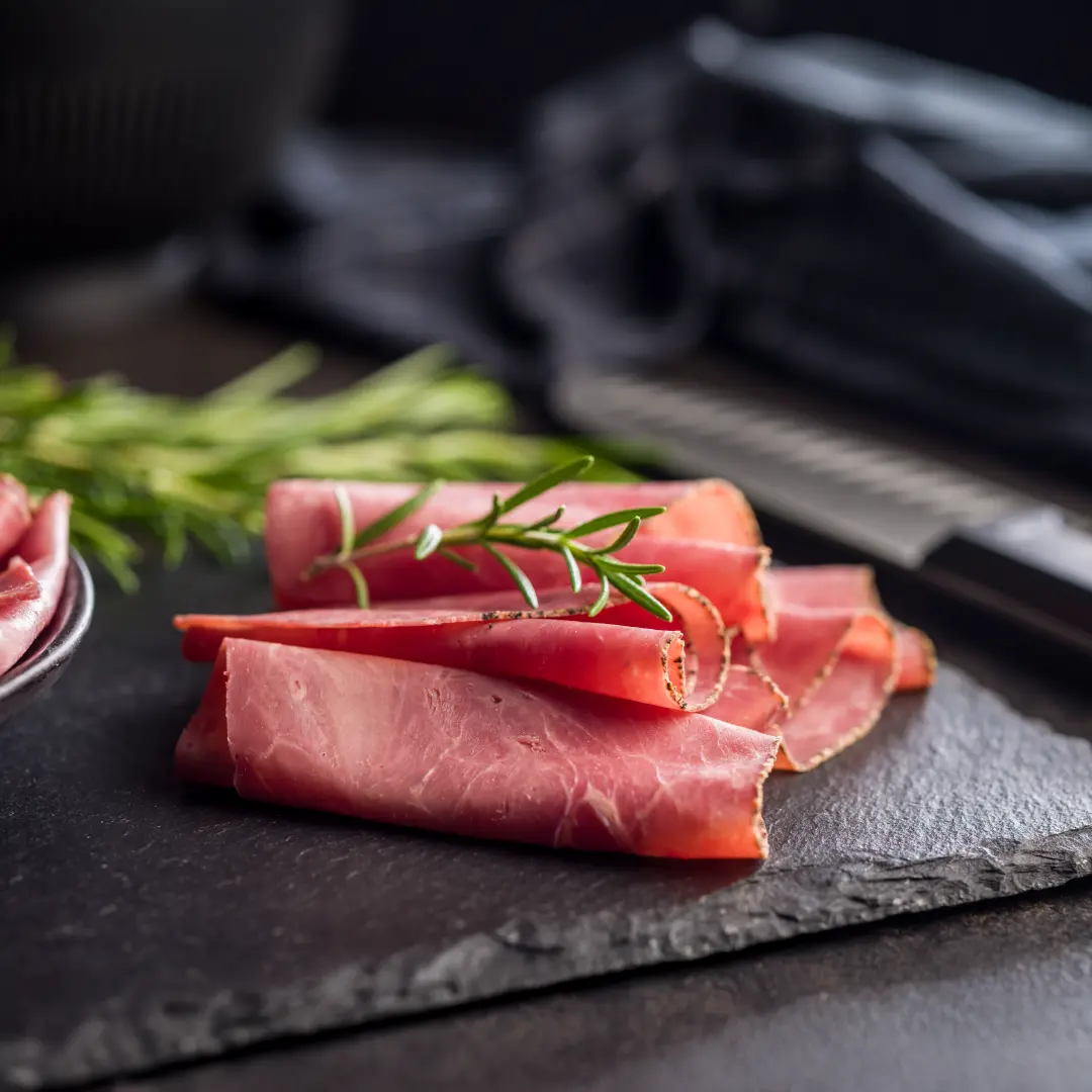 Ein Klassiker vor allem in der modernen Sandwichcuisine! Gekocht und geräuchert, fein aufgeschnitten eine saftige Delikatesse!
